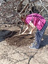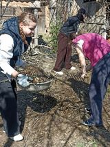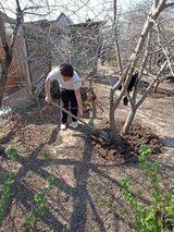 В этот раз участники волонтёрского движения собирали и выносили сухие ветки, вскапывали почву в приствольных кругах кустарников и деревьев жилого двора.