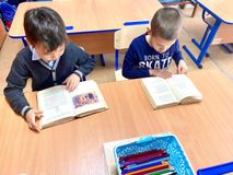 На мероприятии первоклассники познакомились с биографией А.С. Пушкина и его произведениями. Ребята рассматривали иллюстрации новых для них книг, с интересом перелистывая страницы. Затем посмотрели мультфильм «Сказка о рыбаке и рыбке». После воспитанники раскрасили полюбившихся им героев.