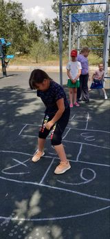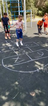 Сегодня - День игры в «классики». Отряд «Дружба» во время прогулки поиграл в несколько вариантов этой игры. Играя в «Классики», у детей развивается двигательная активность, воображение и фантазия.