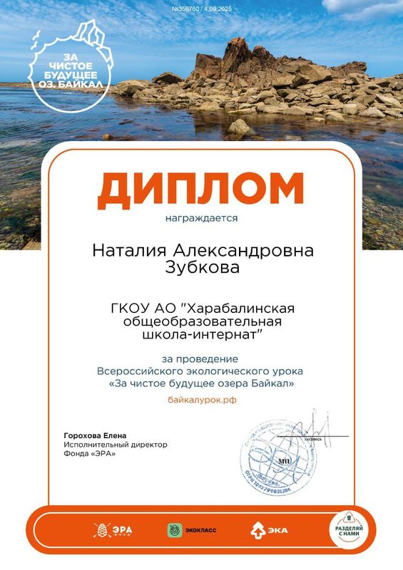 Ко Дню Байкала, в ГКОУ АО «Харабалинская общеобразовательная школа-интернат», для обучающихся 7 класса, был проведён Всероссийский экологический урок «За чистое будущее озера Байкал».