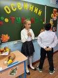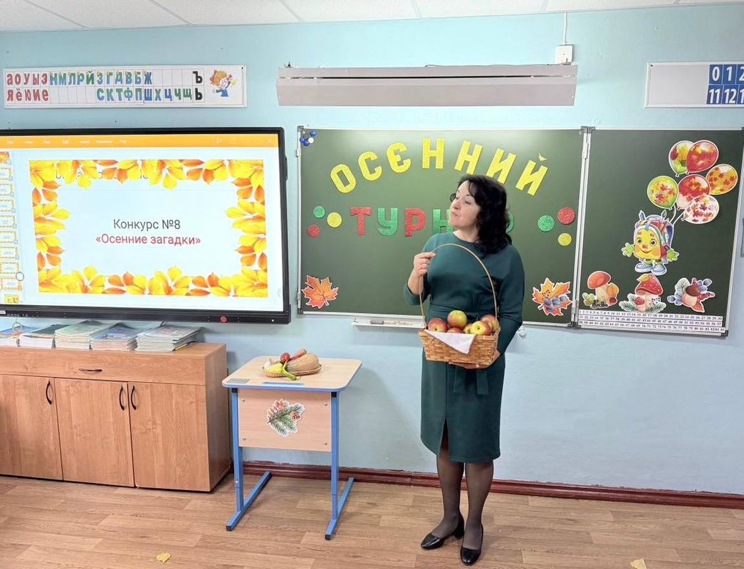 На ринге осеннего турнира встретились команды мальчиков и девочек из 4 класса. «Грибочки» соревновались с «Ягодками» в разных конкурсах. Они решали задачи на догадливость и сообразительность, угадывали дары природы на ощупь и вслепую.