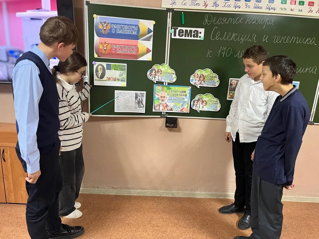 10 ноября обучающиеся нашей школы приняли участие в занятии внеурочной программы «Разговоры о важном», которое было посвящено теме «Селекция и генетика. К 170-летию И.В. Мичурина».