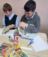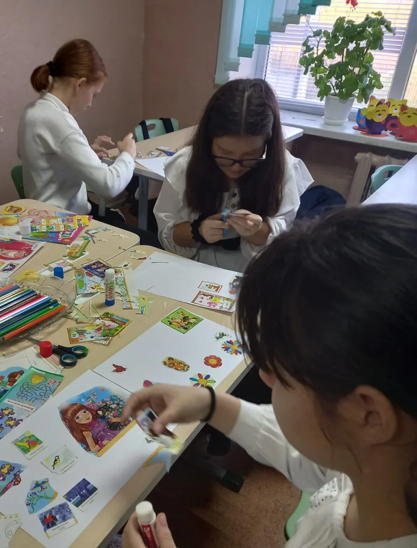 В рамках недели психологии для учащихся 6 класса была проведена развивающая игра «Мир фантазий». Ученики создавали коллажи из листов А4, цветных карандашей, журналов, клея и ножниц. Во время игры они работали сообща, делились идеями и поддерживали друг друга. Это помогло им лучше общаться и находить общие интересы.