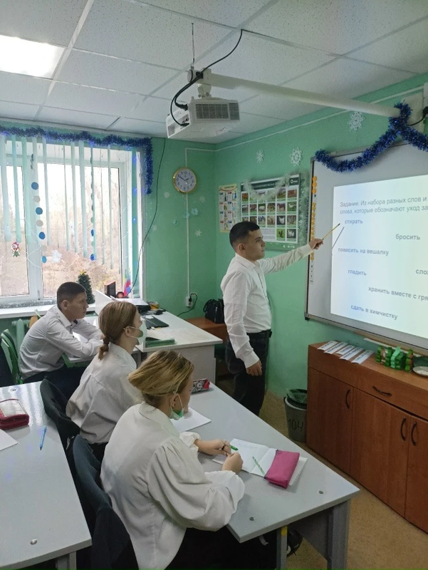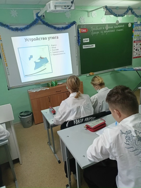 Во время урока узнали, для чего и как нужно гладить белье, как подготовить рабочее место перед глажением, изучали инструктаж по технике безопасности, выполняли устные и письменные задания, вставляли пропущенные слова в предложения.