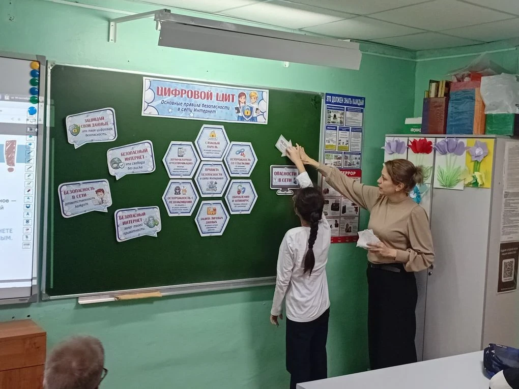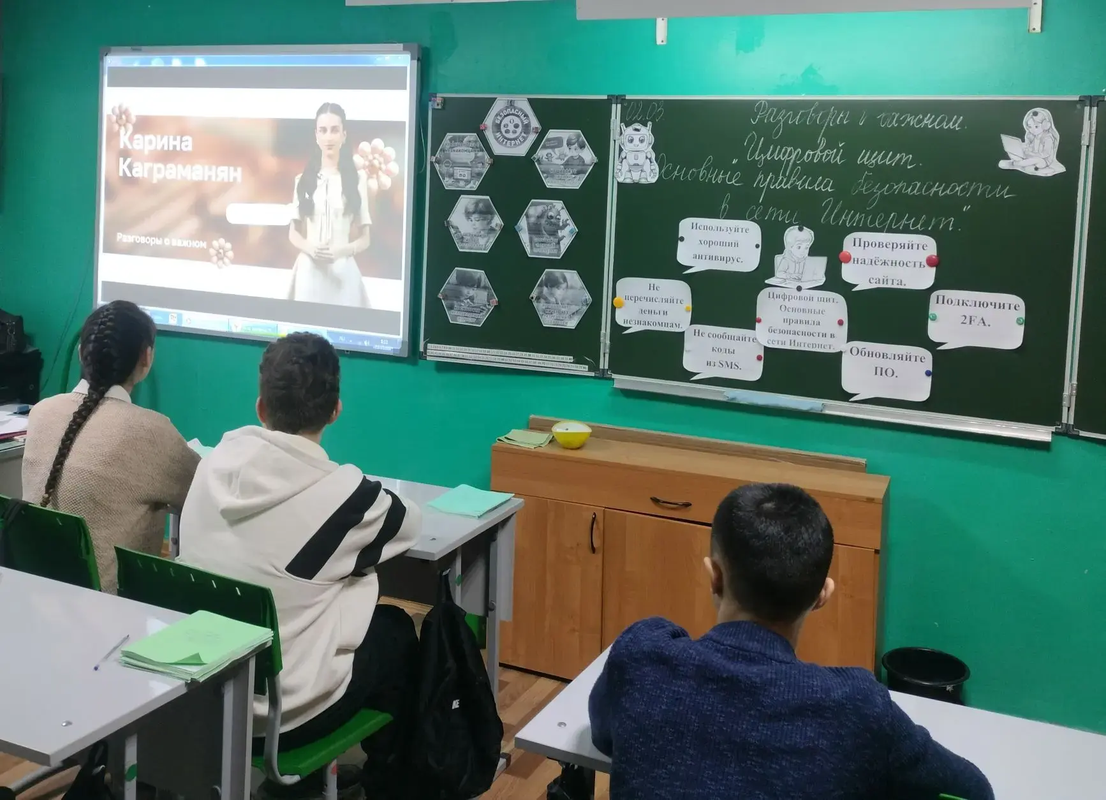 Цель занятия — повысить осведомлённость учеников о рисках, связанных с использованием гаджетов и онлайн-сервисов, и научить их правильно обращаться с личной информацией. Педагоги рассказали о необходимости создания сложных паролей, о важности их конфиденциальности и о том, как быть внимательными при общении в соцсетях и мессенджерах.