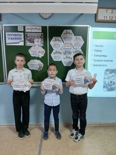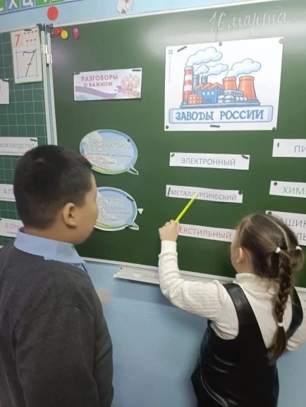 16 марта в нашей школе прошел урок «Разговоры о важном» на тему: «Заводы России». Вместе с ребятами педагоги обсудили , как создаются вещи,которыми мы пользуемся каждый день: от автомобилей и самолетов до бытовой техники и строительных материалов. Поговорили о том,какую роль играют заводы в развитии страны, почему современное производство — это не только станки и цеха, но и наука, технологии и труд людей разных профессий. Такие занятия помогают ребятам увидеть: за каждой привычной вещью стоит труд людей, знания и сложная работа современных производств.