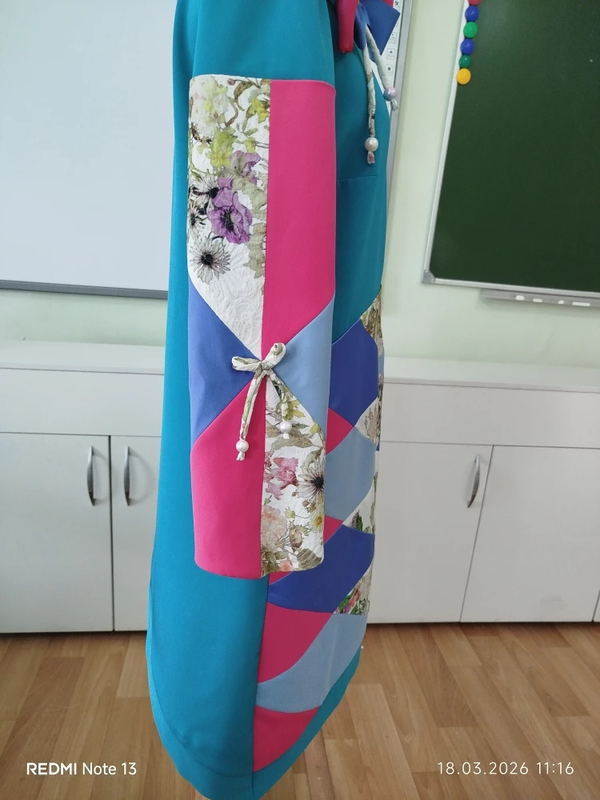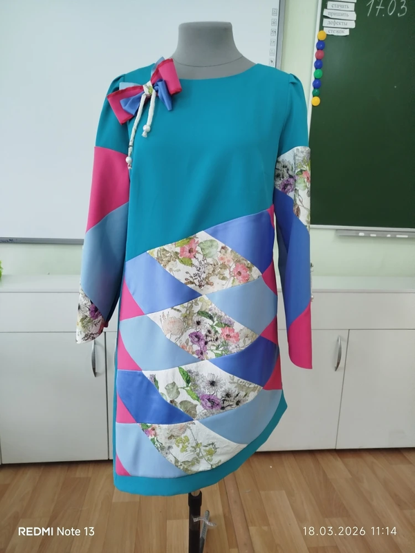 В третьей четверти обучающиеся 9 класса на уроках технологии ( швейное дело) работали над коллективным проектом - созданием платья с элементами лоскутной техники.