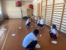 Первоклассники успешно разучили упражнение «Маятник» (перенесение тяжести тела с пяток на носки и обратно); узнали, что стопа – фундамент, опора нашего тела.