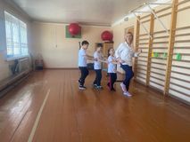 Ребята закрепили понятия ритм и ритмический рисунок с помощью прохлопывания и протопывания с сопровождением музыки. Радостные и восторженные эмоции принесла подвижная игра «Тянем резиночку» с реквизитом резинкой, направленная на укрепление мышц рук, плечевого пояса и дыхательной системы организма.